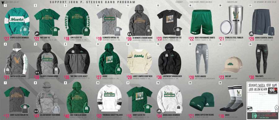 Welcome to our Spring Musicwear Sale! The catalog and order form are attached and can also be found on our website (www.jpstevensband.org) and Facebook page (Friends of the JP Stevens Band). We will also have a limited number of paper copies in the band room. Our sale will run through June 8.